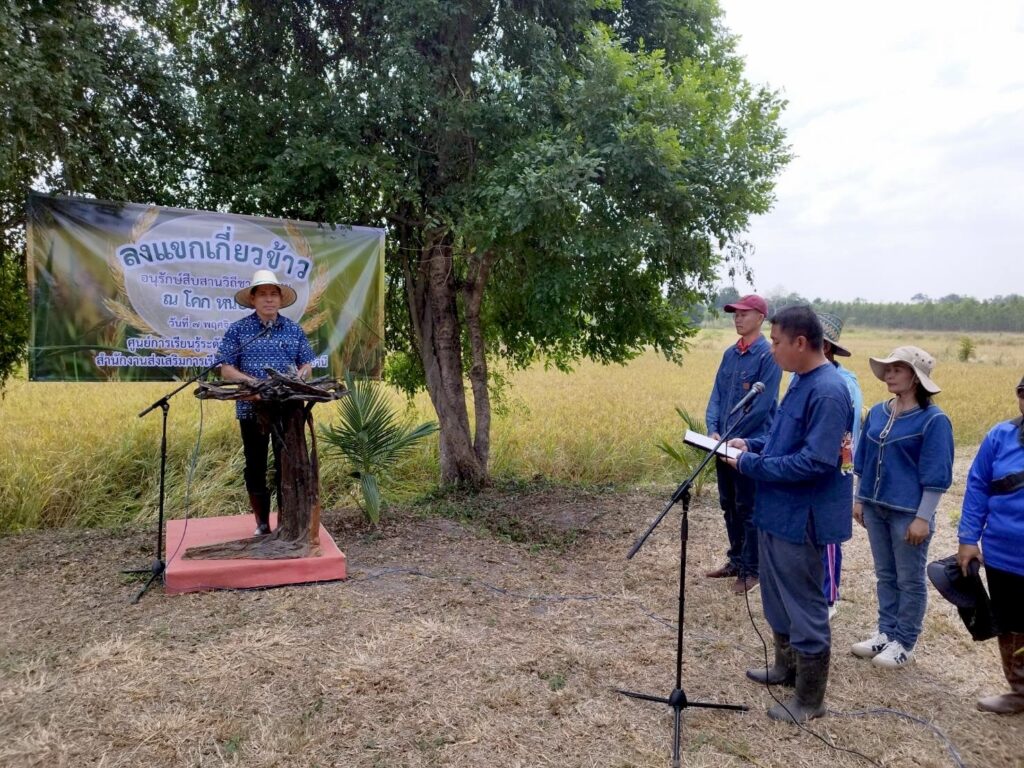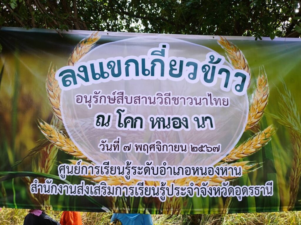 วันพฤหัสบดีที่ 7 พฤศจิกายน 2567 นายชินกร คะอังกุ ผู้อำนวยการสำนักงานส่งเสริมการเรียนรู้ประจำจังหวัดอุดรธานี เป็นประธานเปิดกิจกรรมสืบสานประเพณี ลงแขกเกี่ยวข้าว อนุรักษ์สืบสานวิถีชาวนาไทย เพื่อส่งเสริมให้ตระหนักถึงความสำคัญในการอนุรักษ์ประเพณีอันดีงาม และเห็นคุณค่าของประเพณีลงแขกเกี่ยวข้าว ณ โคก หนอง นา ศูนย์การเรียนรู้ระดับอำเภอหนองหาน สำนักงานส่งเสริมการเรียนรู้ประจำจังหวัดอุดรธานี