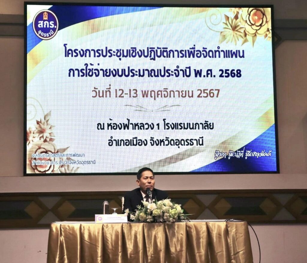 วันพุธที่ 13 พฤศจิกายน 2567 นายชินกร คะอังกุ ผู้อำนวยการสำนักงานส่งเสริมการเรียนรู้ประจำจังหวัดอุดรธานี ประธานพิธีปิด โครงการประชุมเชิงปฏิบัติการเพื่อจัดทำแผนการใช้จ่ายงบประมาณ พ.ศ. 2568 พร้อมด้วย นางสาวชมพูนุท หิริโกกุล รองผู้อำนวยการสำนักงานส่งเสริมการเรียนรู้ประจำจังหวัดอุดรธานี คณะผู้บริหารศูนย์ส่งเสริมการเรียนรู้ระดับอำเภอ ข้าราชการครู และบุคลากรทางการศึกษา ในสังกัด สำนักงานส่งเสริมการเรียนรู้ประจำจังหวัดอุดรธานี ระหว่างวันที่ 12-13 พฤศจิกายน 2567 ณ ห้องประชุมฟ้าหลวง 1 โรงแรมนภาลัย อำเภอเมือง จังหวัดอุดรธานี